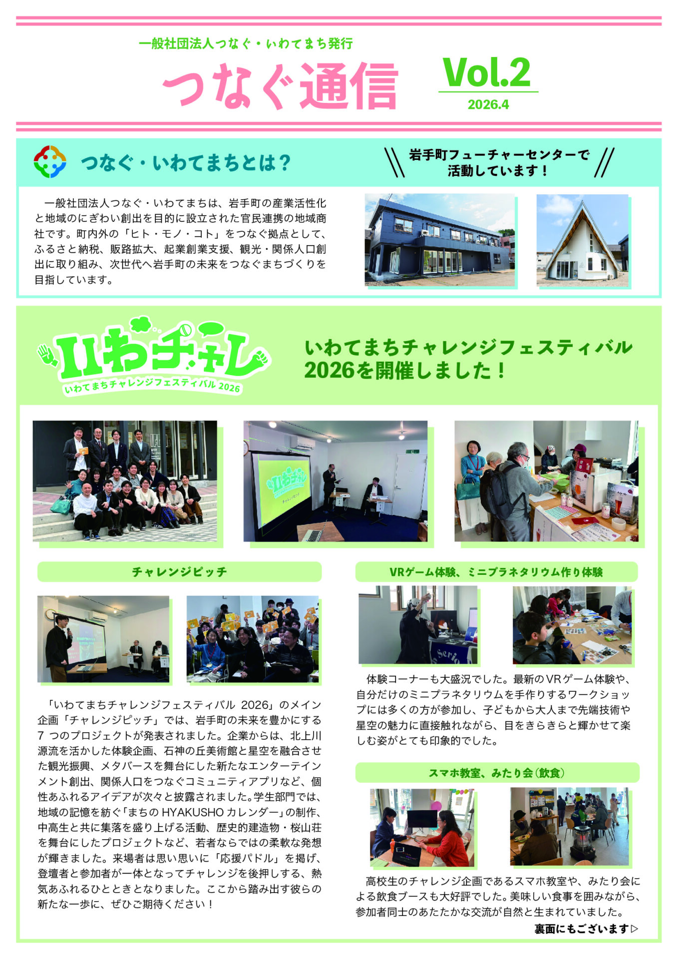 いつも(一社)つなぐ・いわてまちの活動にご関心をお寄せいただき、ありがとうございます。私たちの取り組みをご紹介する広報紙「つなぐ通信」の第2号を発行いたしました!