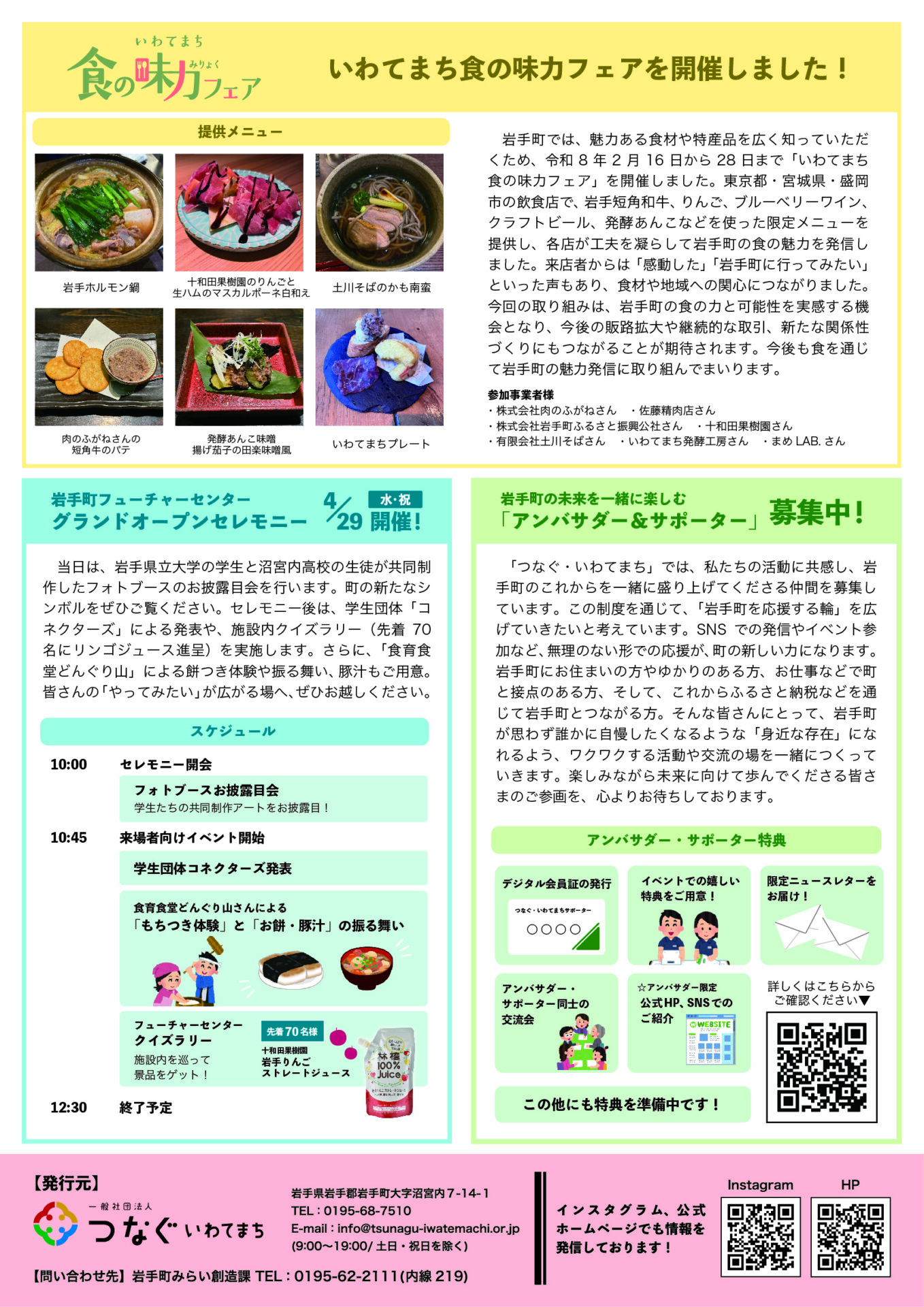 今後も、町内外の皆さまに「つなぐ・いわてまち」の取り組みをより身近に感じていただけるよう、定期的にお届けしてまいります。